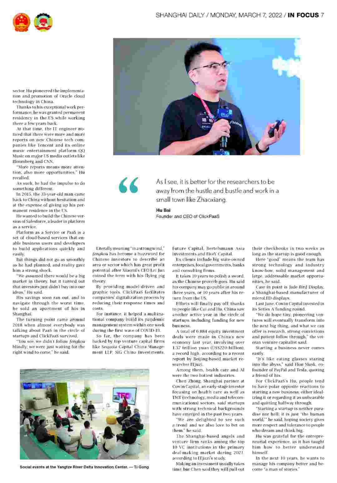 《上海日报》专访沃钱包创始人、、、CEO胡柏,,探究其创业背后的故事!!!